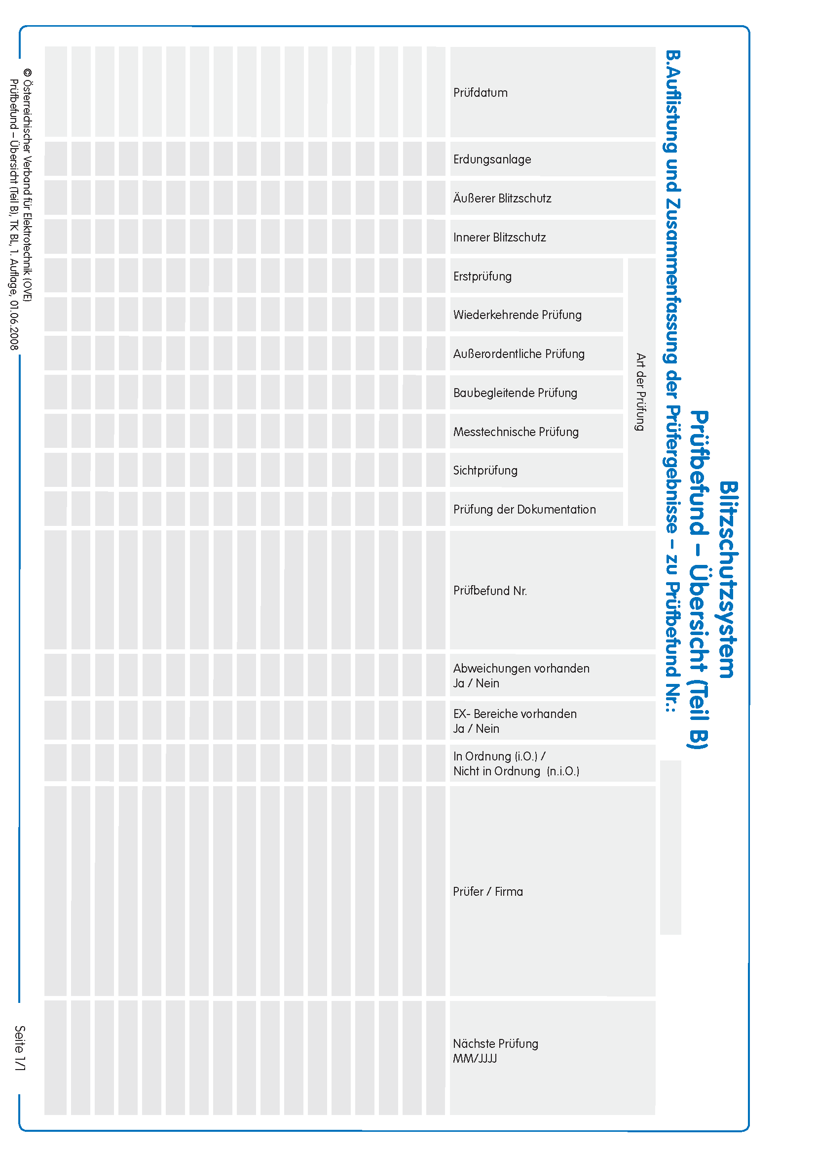 Eine Ausfüllhilfe für den Prüfbefund ist erhältlich unter: OVE-Fachinformationen/Blitzschutz